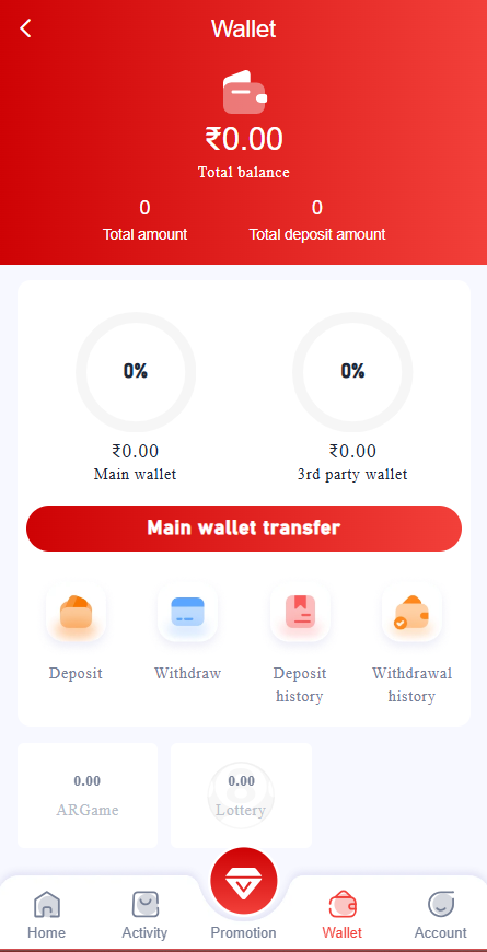 Click on the “Wallet” or “Withdraw” icon from the dashboard to open the cash withdrawal page.