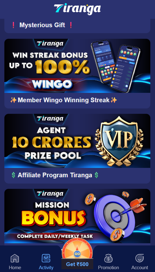 With the mobile app format, Tiranga Games is always and everywhere available without any hassle and this service users will have the opportunity to play short games without any complex setup.
